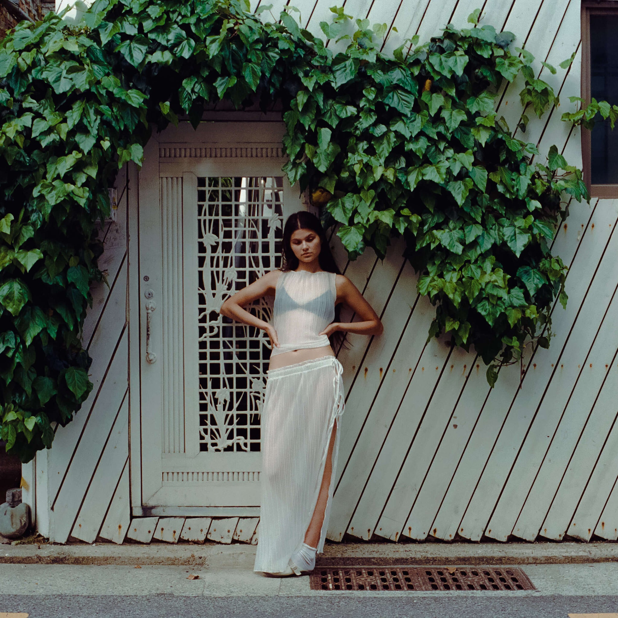 Pleated Light Lurex Ruched Midi Skirt in Night