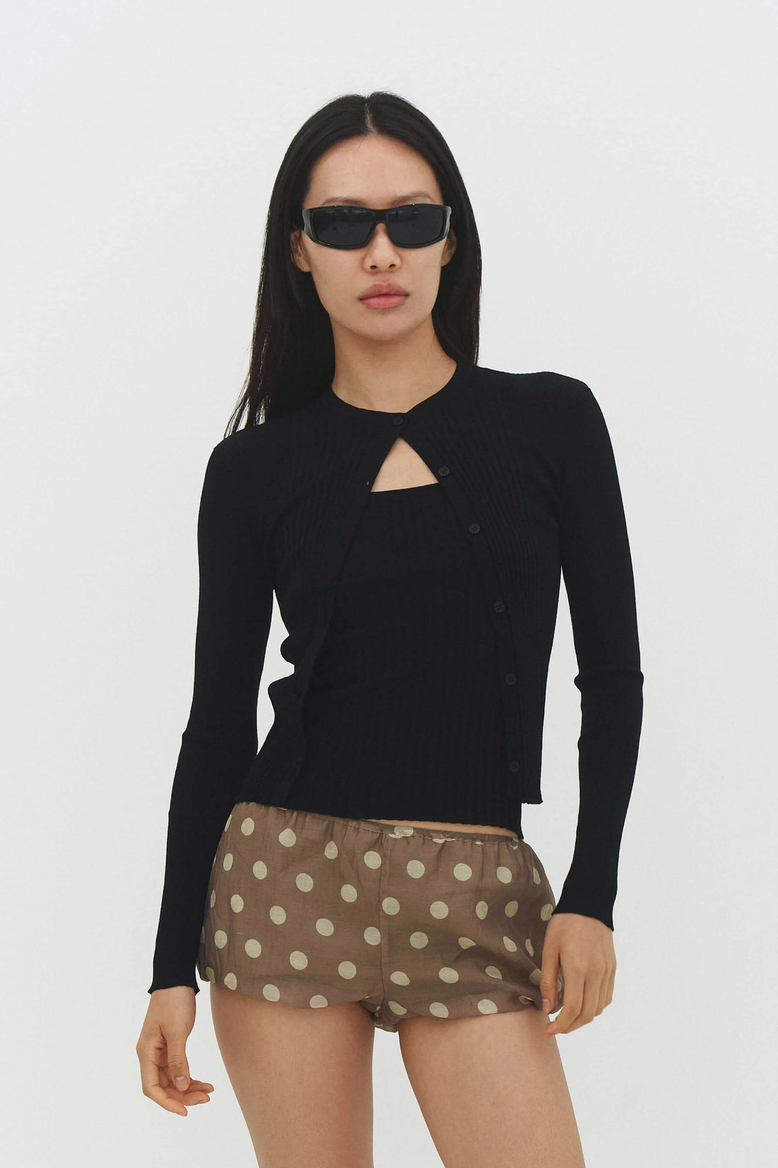 Dot to dot. The Emili Top is a fitted sleeveless crop with scalloped trim. Style...