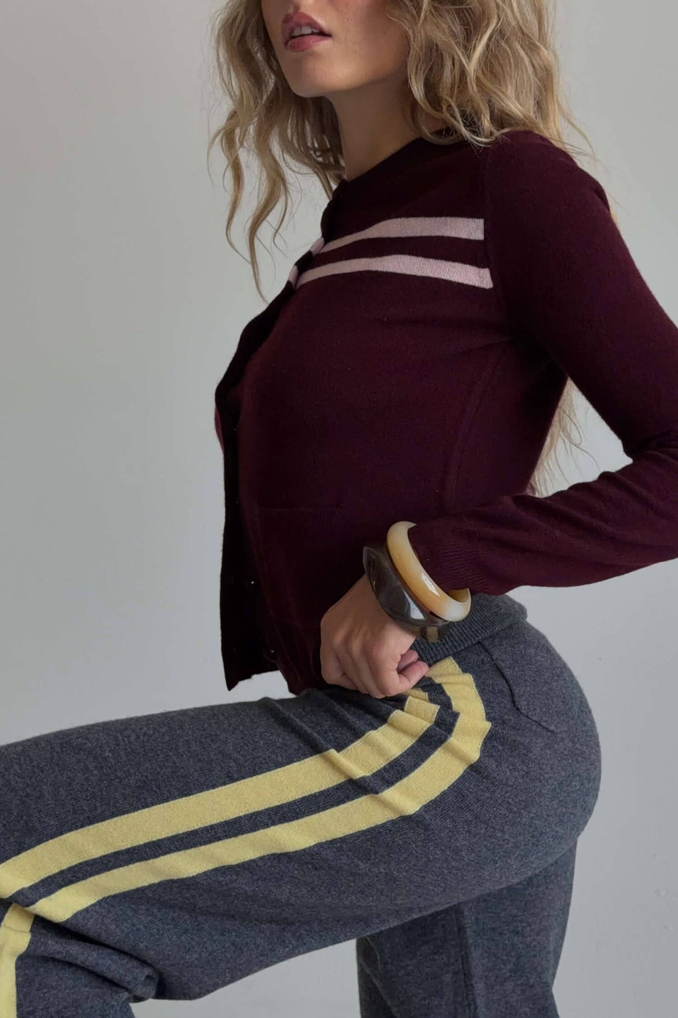 The Cashmere Wool Stripe Cardigan in Charcoal/Butter is made from a lightweight cashmere-wool blend with...
