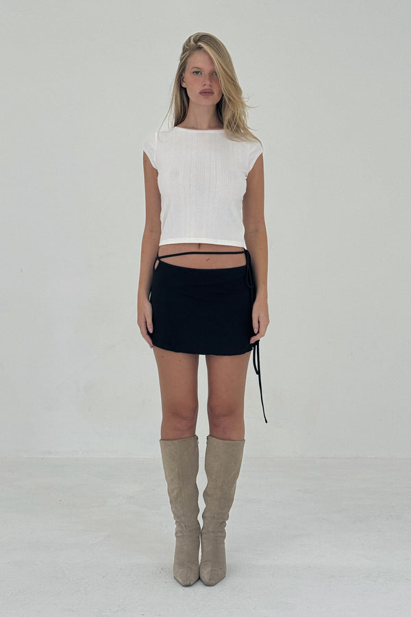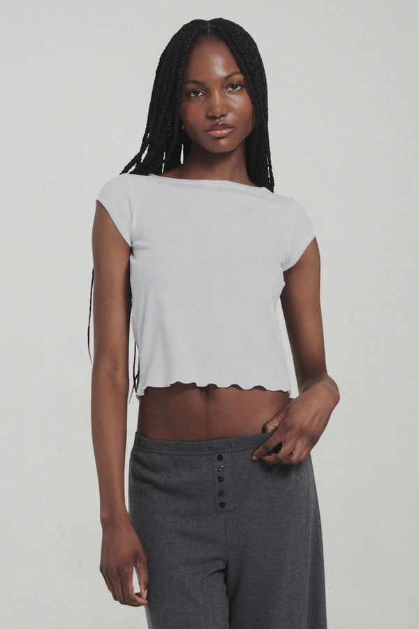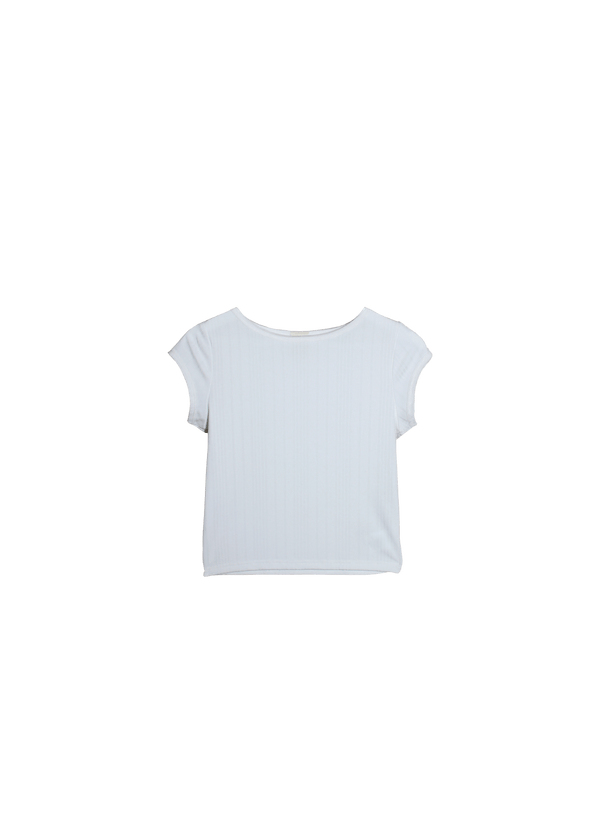 The Boat Neck Short Sleeve Top in Off-White is made from a smooth, stretchy ribbed jersey with a lightweight feel. Fitted through the body. Comfortable, breathable, and easy to wear every day.