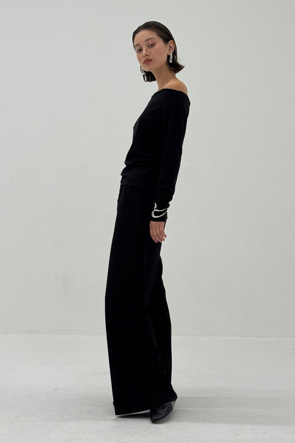 The Button Lounge Pants in Charcoal are made from a ribbed rayon-blend jersey with a smooth, stretchy finish. Fitted through the waist and hips with subtle Long Sleeve Open Shoulder Top in Black for the ultimate lounge set.