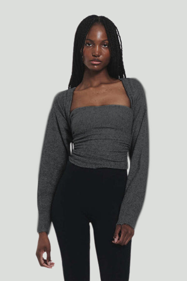 CASHMERE WOOL MULTI-WAY BOLERO TOP IN CHARCOAL
