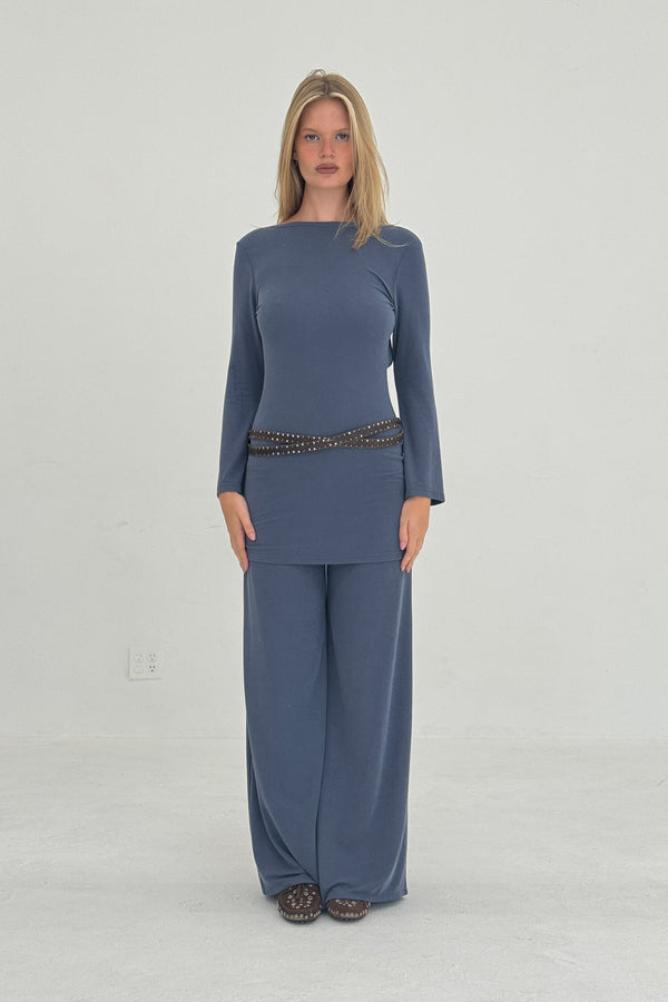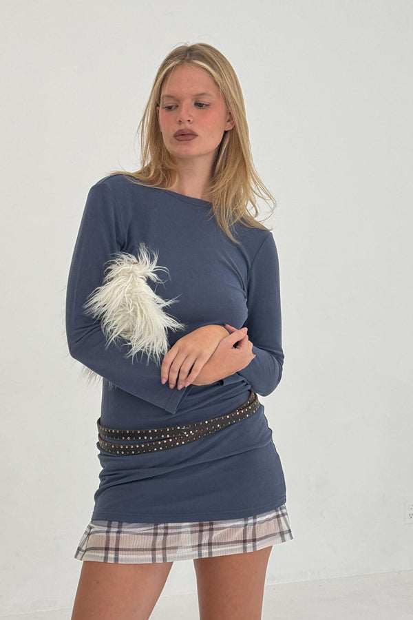 The Tie-Back Mini Dress in Foggy Navy is made from soft and stretchy light-medium weight cupro with great breathability. A simple silhouette with a clean boat neck and an open back finished with an adjustable tie detail. An easy-to-wear essential in a muted blue tone, with a comfortable fit that moves with you.