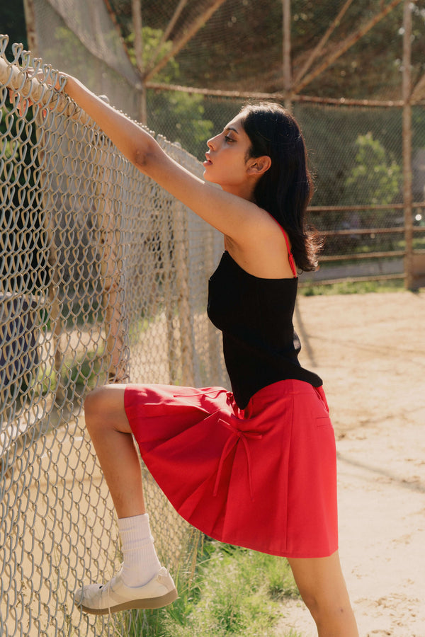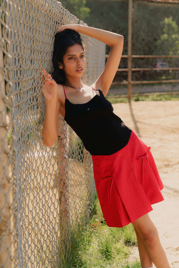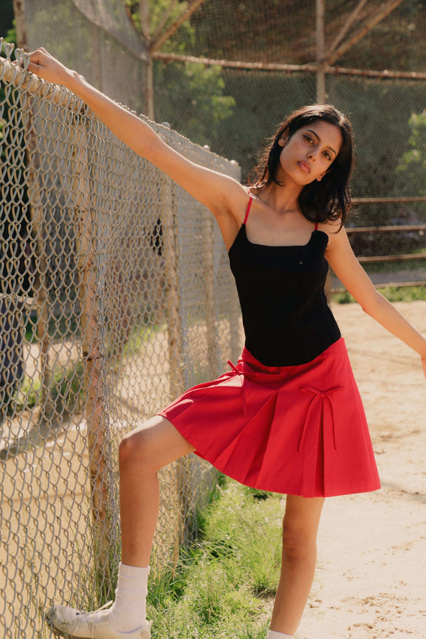 Our Mini Bow Skirt is perfect for all the cherry-loving coquette girls this season.