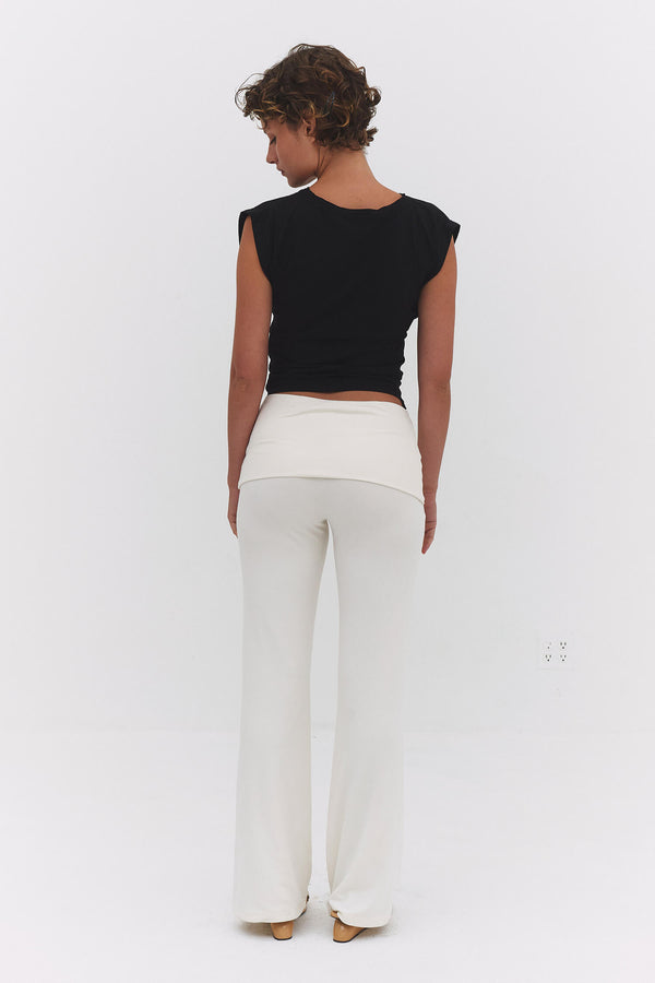The Maru Pant are wide leg pants with a fold-over waistband and flared hem. Style with the matching top or mix and match.