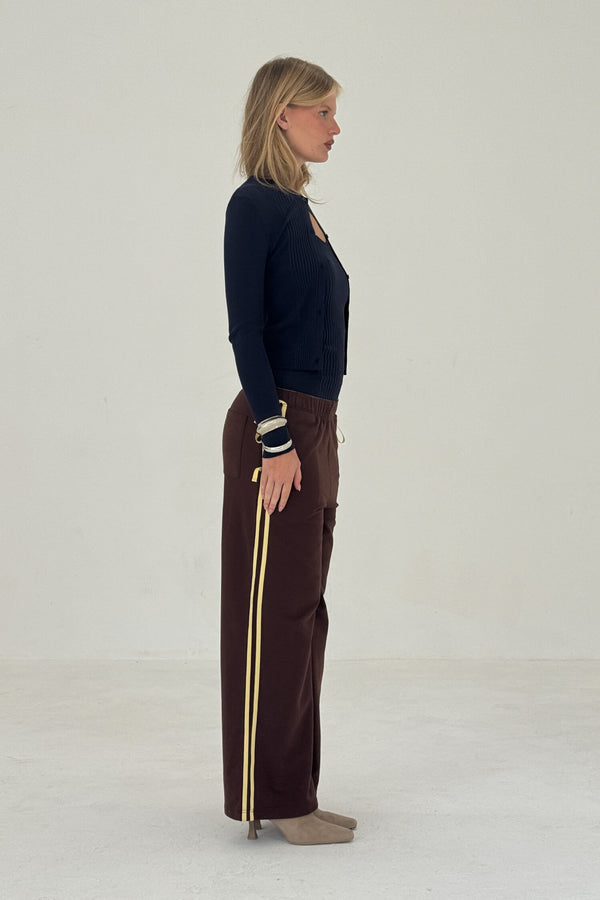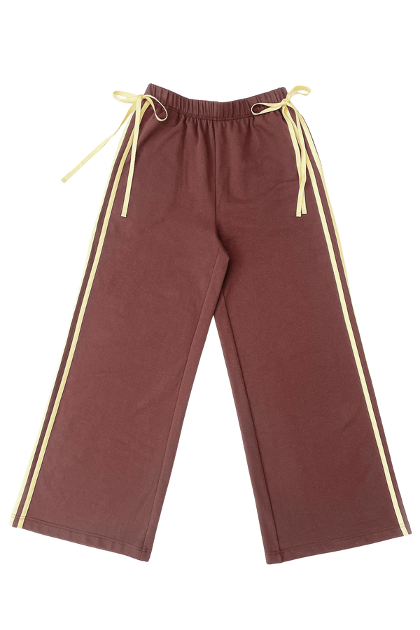 The Bow Jogger in Chocolate Butter blends athletic comfort with feminine detail.