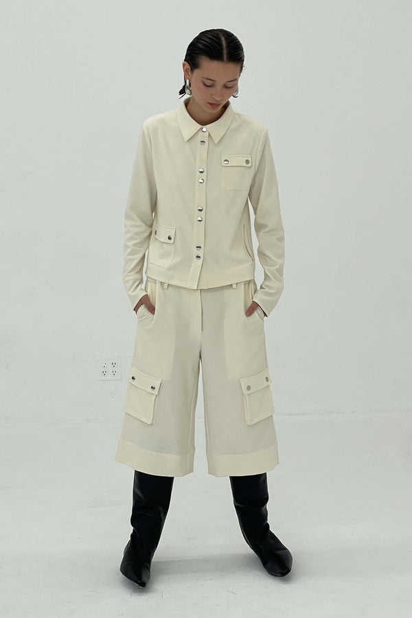 The Leon Shorts in Buttercream are crafted from our signature faux tweed with light stretch for comfort. Wrinkle-resistant and medium weight, they offer a polished fit that holds its shape. Wear with the matching jacket or style solo for an elevated warm-weather look.