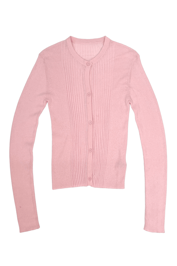 RIBBED KNIT CARDIGAN IN POWDER PINK