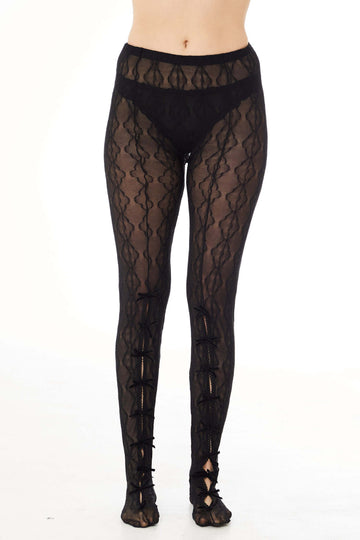 Our best-selling Mariposa lace now in the loveliest pair of tights. These lace tights feature precious bows over cutouts starting at the knee.
