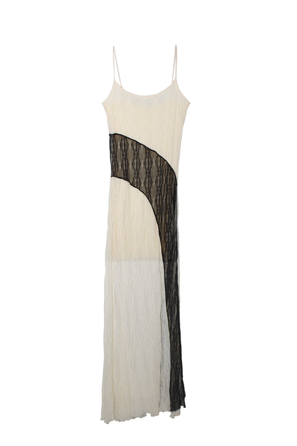 This flowing maxi silhouette features subtle color blocking that creates visual interest while maintaining a serene aesthetic. Crafted from lightweight fabric that moves gracefully with every step, the soft cloud hue evokes a dreamy quality perfect for both special occasions and elevated everyday wear. A sophisticated statement piece that effortlessly combines comfort with style.