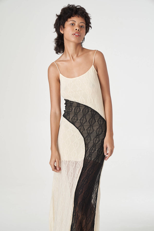 The Mariposa Color Block Maxi in Cloud embodies ethereal elegance with contemporary design.