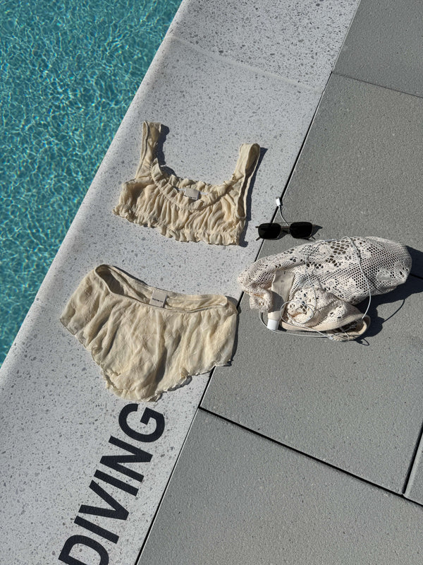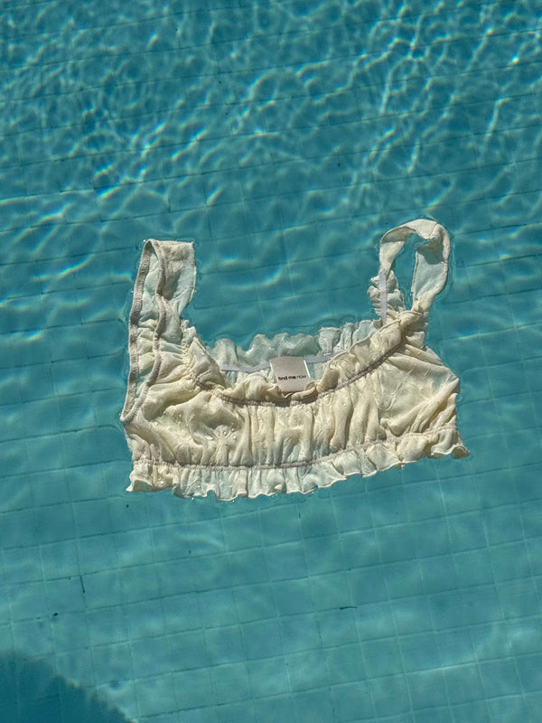 cloud bralette with delicate ruffle detail. soft mariposa fabric designed for everyday comfort that moves with you. wear alone or layer under sheer pieces.