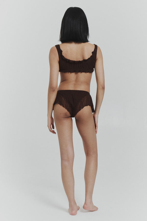 flouncy flutter thong with subtle ruffle detail. crafted in soft mariposa fabric that moves with your body. designed to pair with matching bralette.