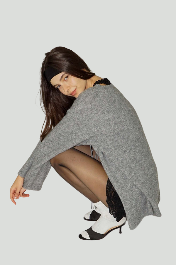 This thoughtful piece features a unique reversible design that provides two distinct looks in one elegant layer. Crafted from premium fabric in a sophisticated slate hue, this multifunctional cardigan combines practical luxury with timeless appeal for year-round wear and endless styling options.