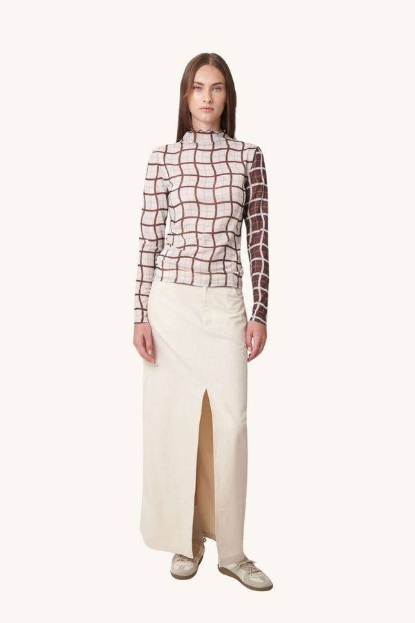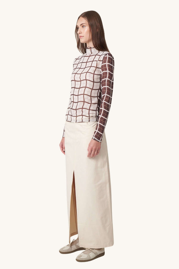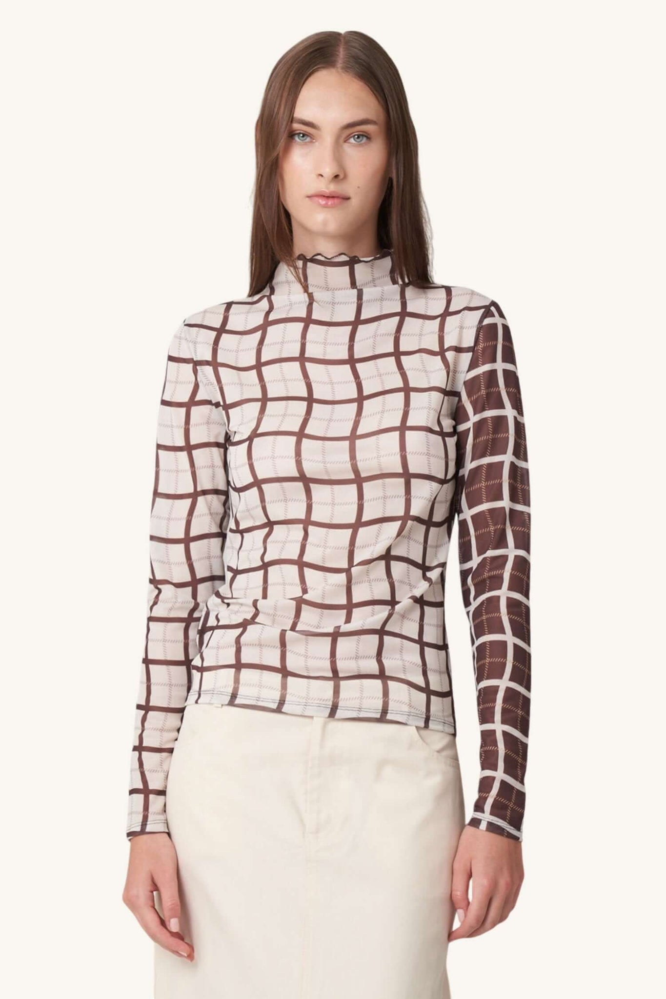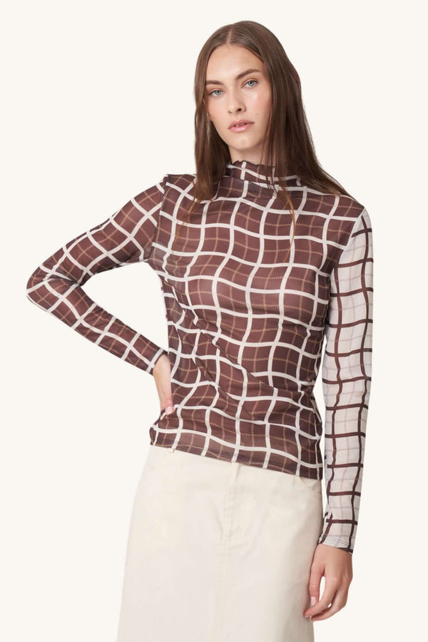 The Paulie Mockneck Top in Java delivers a refined, minimalist aesthetic.