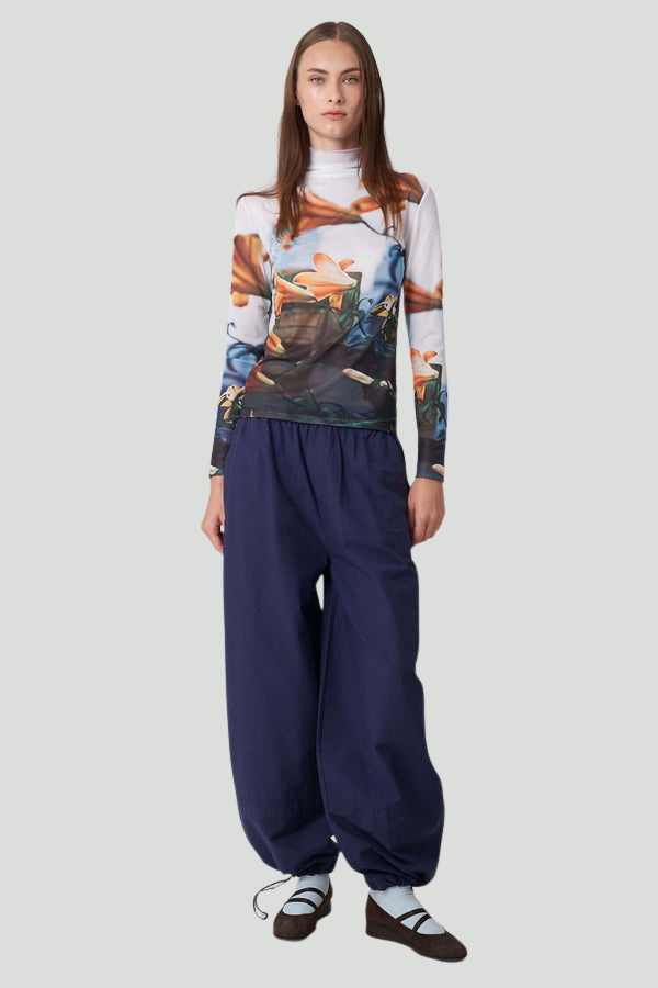 The Paulie Mockneck Top in Tiger Lilies makes a vibrant statement with sophisticated design.