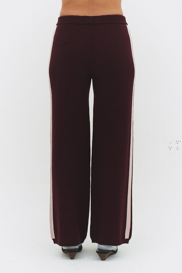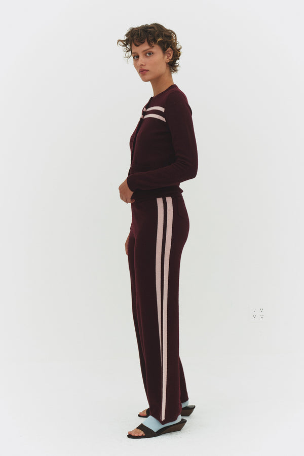 CASHMERE WOOL STRIPE WIDE-LEG PANT IN RASPBERRY