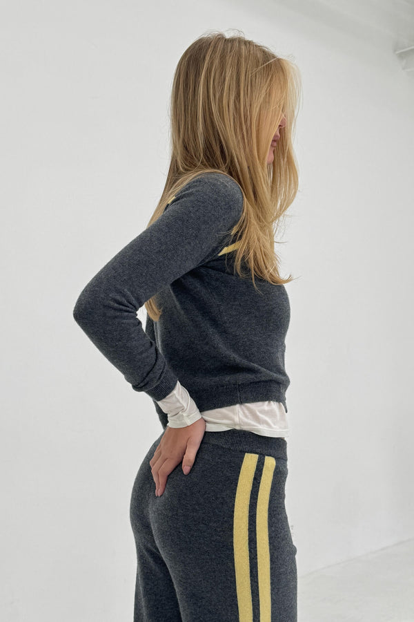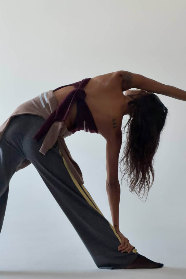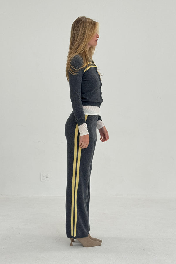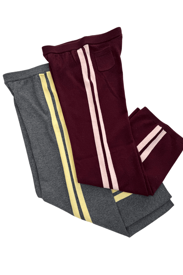 Relaxed and comfortable with a flattering wide-leg silhouette and contrast butter-toned side stripes. Features an elastic waistband and ribbed cuffs for easy, all-day wear.
