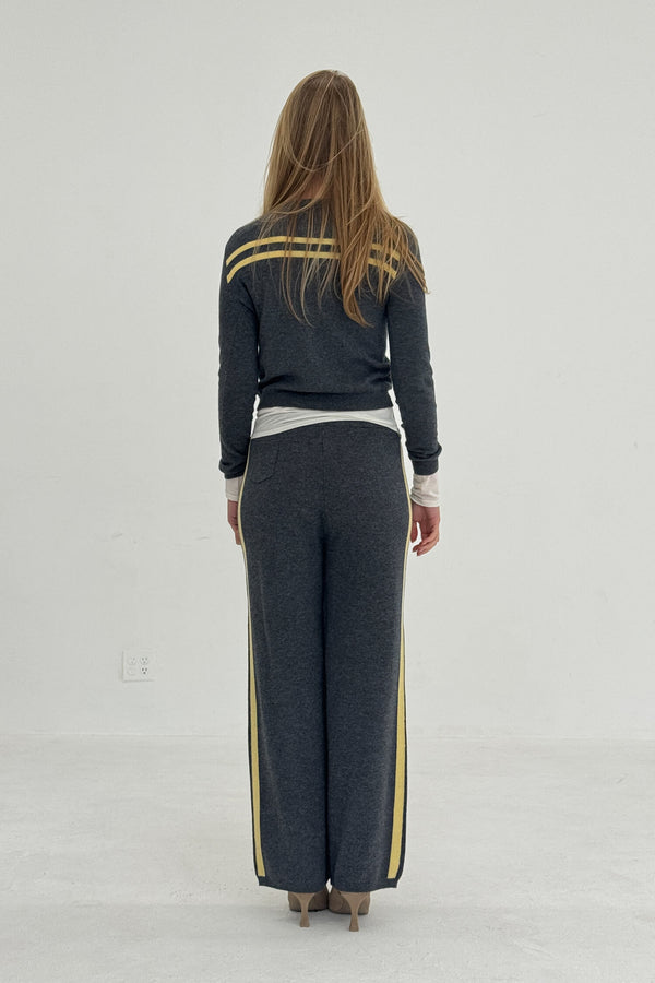 Cashmere Wool Stripe Wide-Leg Pant