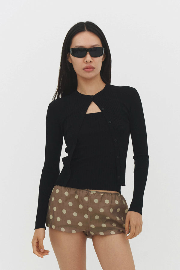 Essential layering, designed for everyday. Alternating fine and wide ribbing adds texture and movement to this fitted cardigan. Made from a soft, lightweight knit with plenty of stretch and breathability. Anti-pilling and wrinkle-resistant for easy wear, now in navy. Finished with a clean button front and long sleeves.