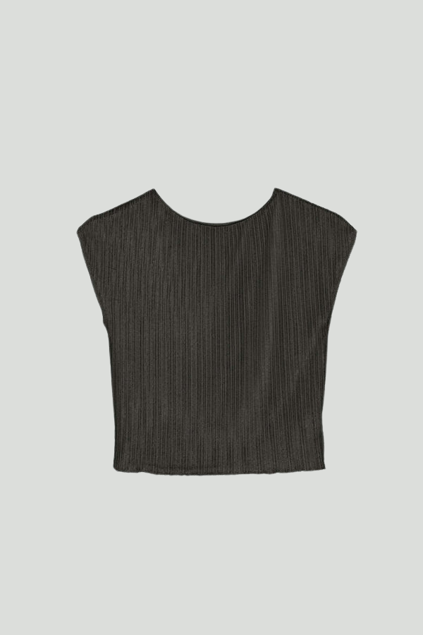 The Ribbed Mesh Baby Tee in Black combines nostalgic silhouette with contemporary texture.