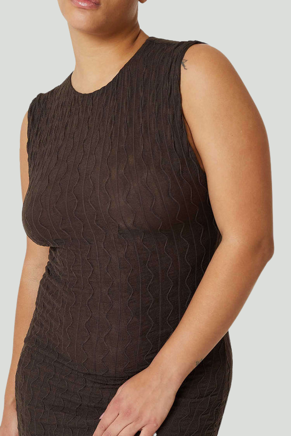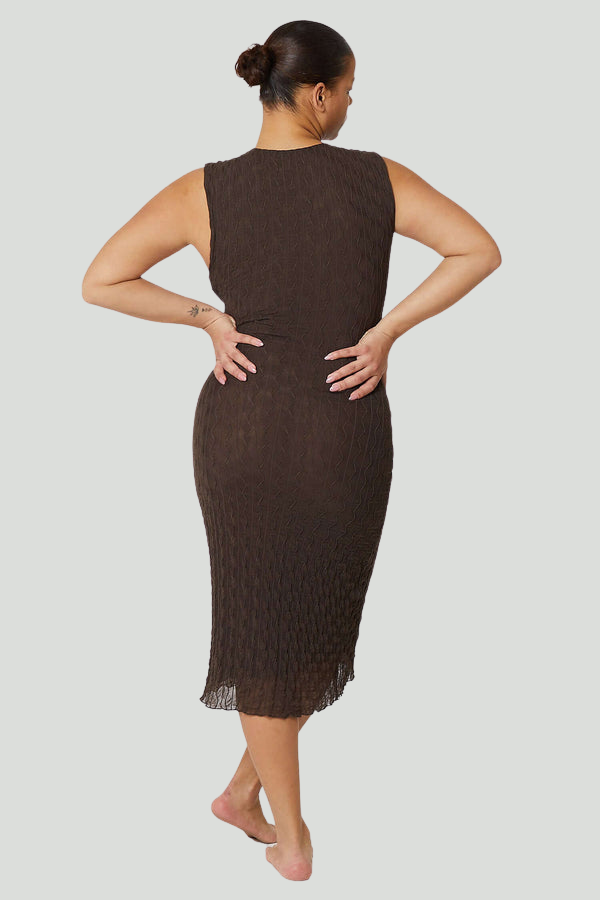 The Ross Midi Dress in Brown offers timeless sophistication with modern appeal.
