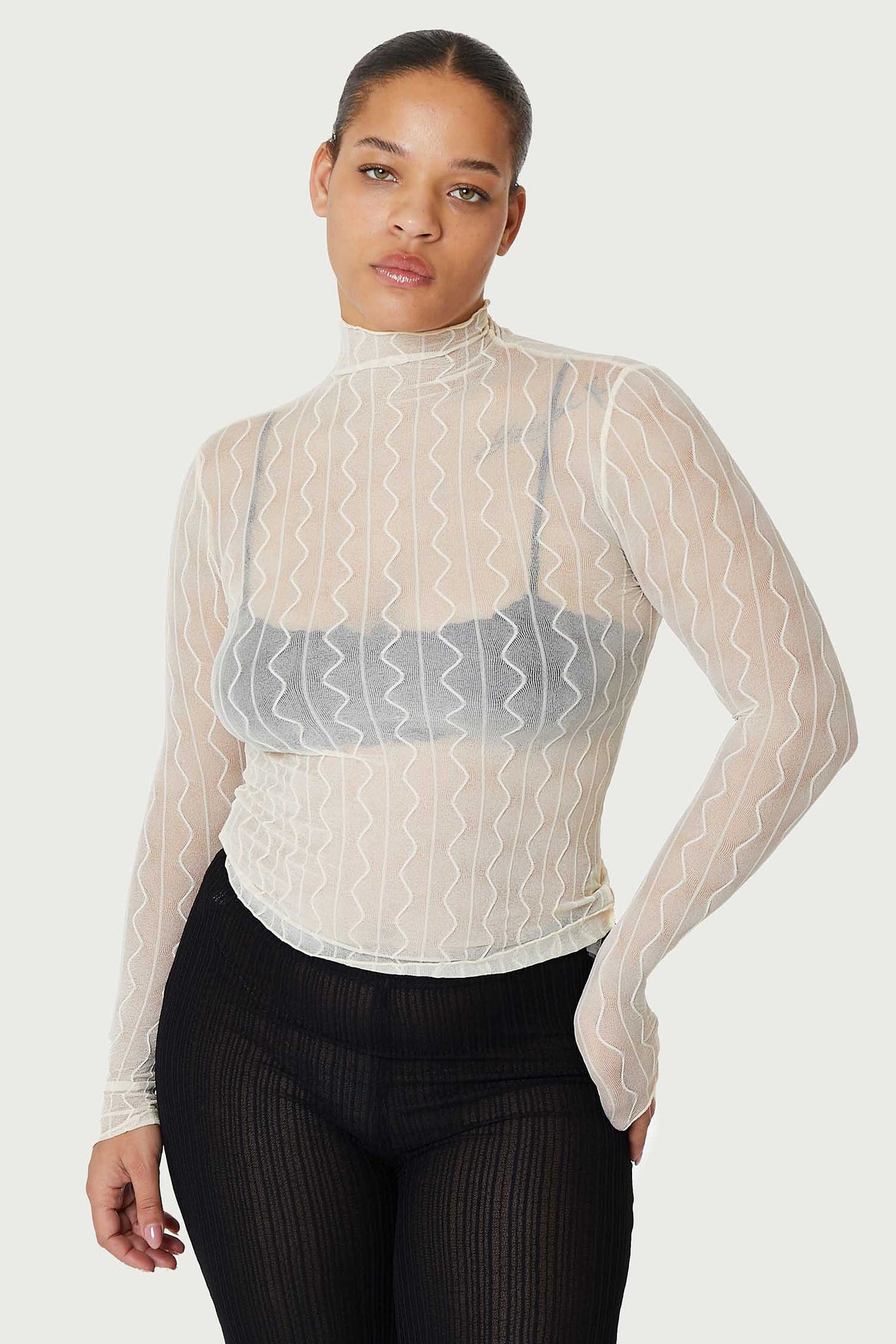 The Ross Mockneck Top in Cream is a versatile wardrobe essential, featuring soft and stretchy mesh fabric with an elegant embroidered pattern. Perfect for layering or wearing on its own, it offers a flattering, fitted silhouette. Ethically made in small batches, this timeless piece combines style, comfort, and sustainability, making it a standout addition to your collection.