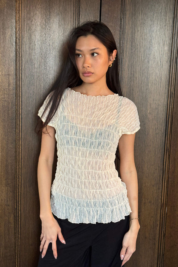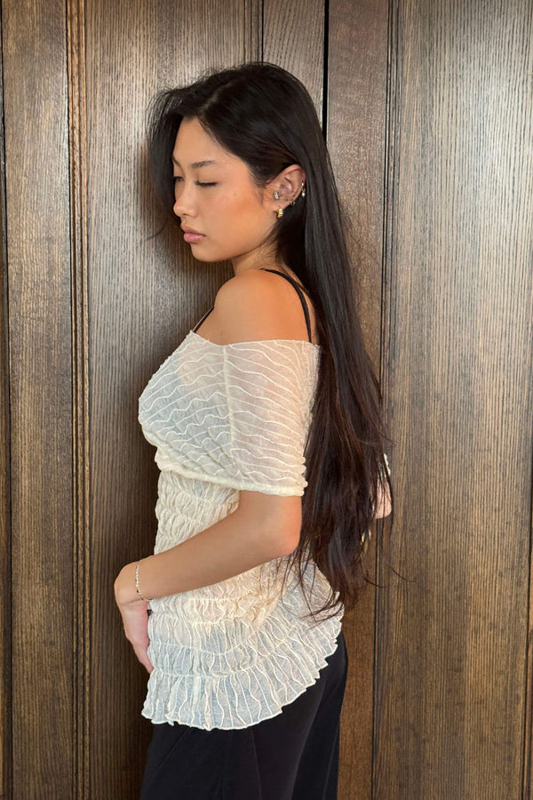 The Ross Off-Shoulder Ruched Top in Black is made from medium-lightweight stretch lace with softness and texture. Fitted and feminine with ruched detailing at the neckline and hem, and an off-shoulder silhouette. A versatile essential in classic black, featuring 4-way stretch fabric that's easy to wash.