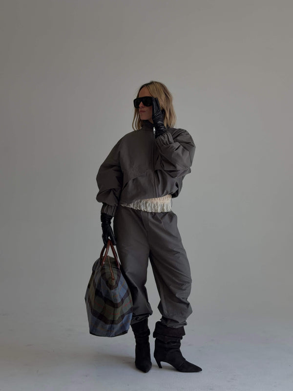 The Sable Pant in Charcoal is made from medium-weight soft cotton anorak fabric with wrinkle resistance, breathability, wind resistance, and water repellency. Fitted for a sleek silhouette, it's both comfortable and durable. Pair with the matching Sable Jacket