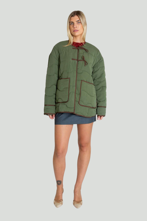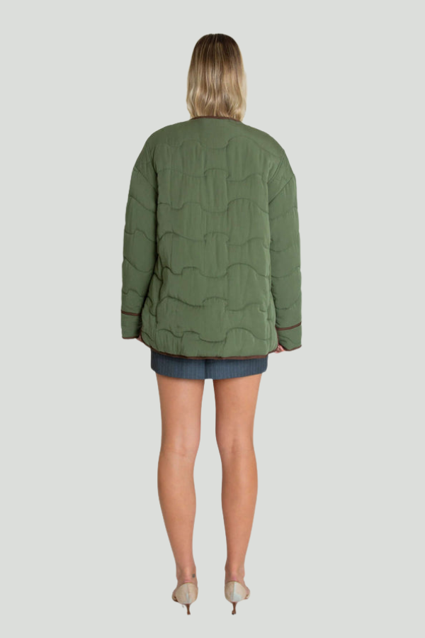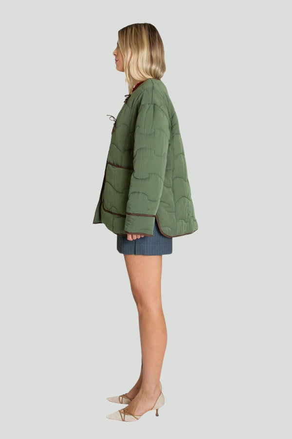 The Simple Knot Quilted Coat in Boxwood is the perfect outerwear for the cooler months.