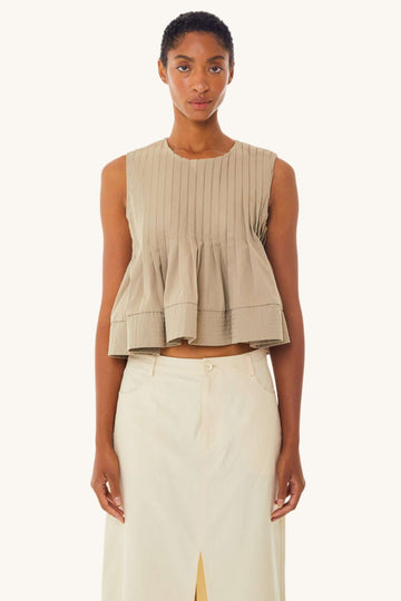 The Soliel Pleated Tank in Sand brings dimensional texture to effortless style.