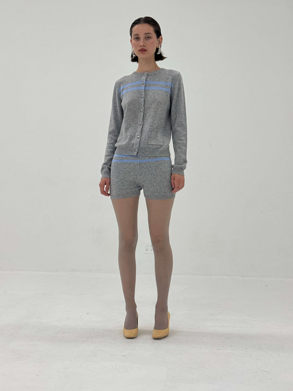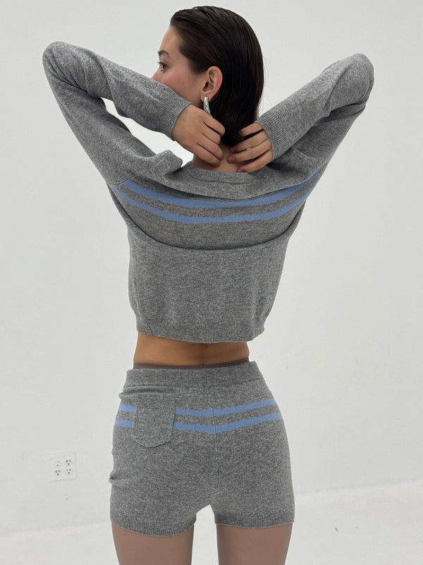 The Stripe Knit Shorts in Charcoal and Butter are made from a lightweight cashmere-wool blend with soft stretch and a smooth finish. Fitted and easy to move in, with contrast stripe detailing and a pull-on waistband. Anti-pilling, wrinkle-resistant, and designed for comfort without losing structure.